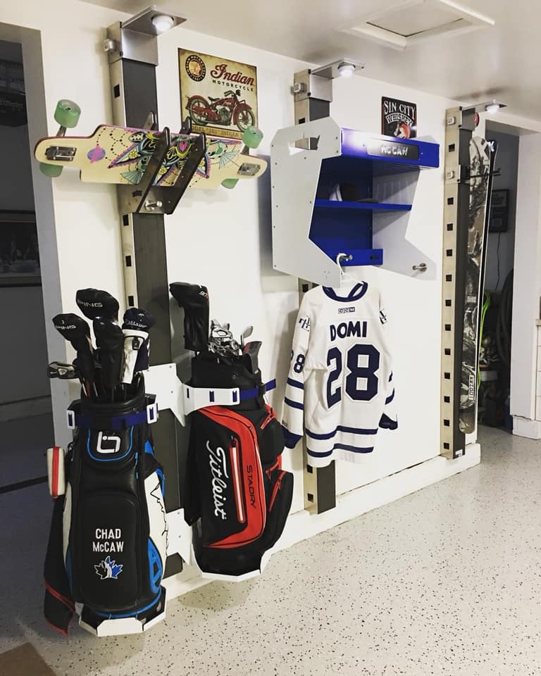 We have garage storage systems for several different sports including hockey, golf, skiing, snowboarding, wakesurfing, waterskiing, snowmobiling, biking, and more.
