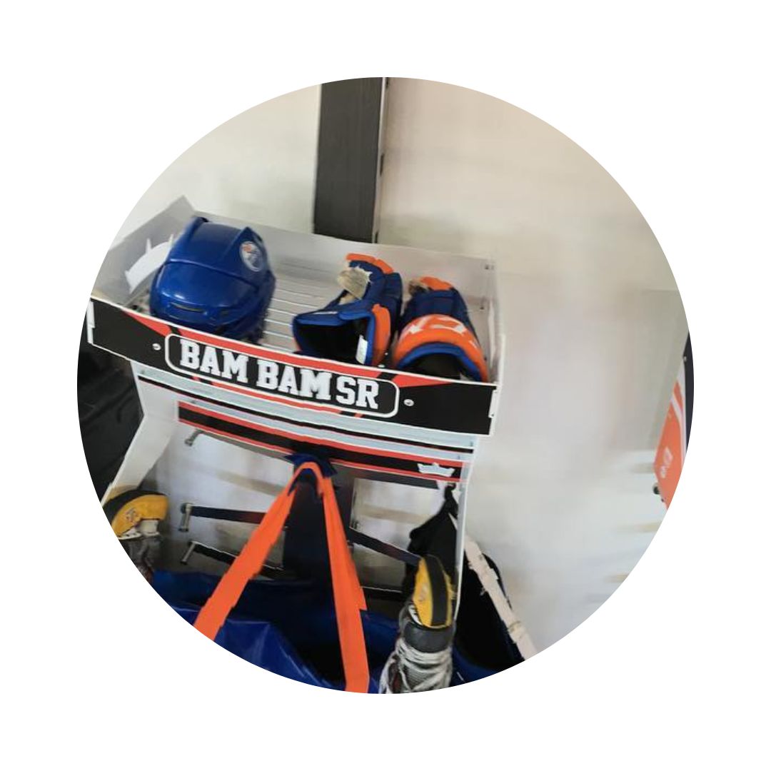 They can be wrapped in team colours for an additional cost. We cannot add the logos though, as those are copyrighted/trademarked by the NHL.